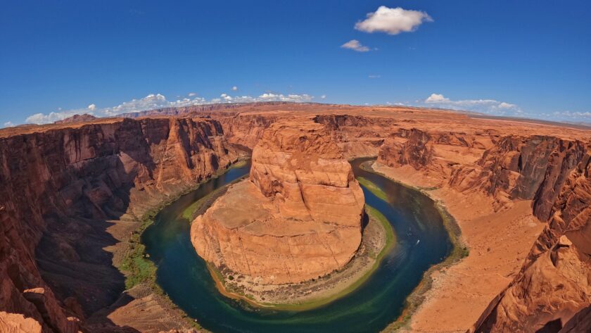 Neben dem Antelope Canyon ist wohl der Horseshoe Bend die meist fotografierte Sehenswürdigkeit in Page. Hier macht der Colorado River eine perfekte 180 Grad Wendung, was eben ausschaut wie ein Hufeisen. Ein Stück flussaufwärts befindet sich der Glen Canyon Dam, ein sehr beeindruckender Staudamm, der den Lake Powell aufstaut. Dieser See bietet unzählige Badeplätze, wie zum Beispiel den Lone Rock Beach. Eigentlich steht hier ein einsamer Stein mitten im Wasser, durch den Klimawandel fehlen aber ca. zwei Drittel des Wassers, was sich auch am Weg zum Strand bemerkbar macht, denn dieser liegt jetzt ein gutes Stück vom Parkplatz weg. Trotzdem findet man hier einen traumhaften Sandstrand und kann sich im See gut abkühlen. Folgt man dem Fluss weiter flussabwärts, gelangt man zu Lees Ferry. Dies war früher der einzige Ort innerhalb von 800 Kilometern, wo man den Colorado River per Boot überqueren konnte.